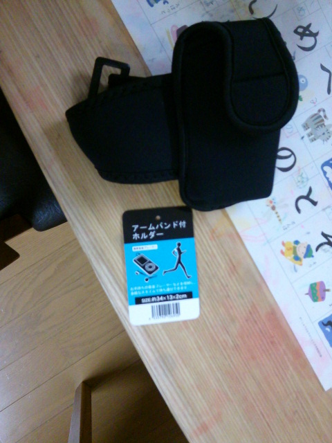 とりあえず、100円ショップで見つけたアームポーチ↓で右腕に装着してみました。