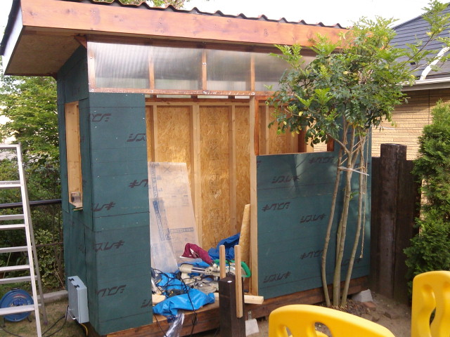 自転車置き場を作ったときに使った、オンデュラ釘が大量に余っていたので、今回も同じものを使用したかったんですが、色的にテラコッタ色がいいという嫁さんの意見で、テラコッタ色が売っていたオンデュビラに決定。