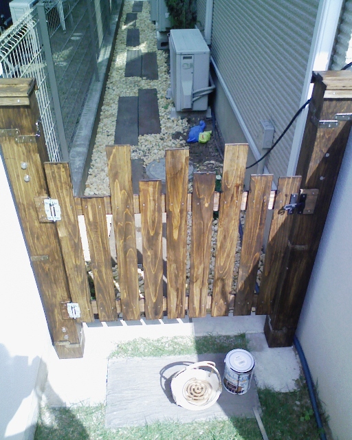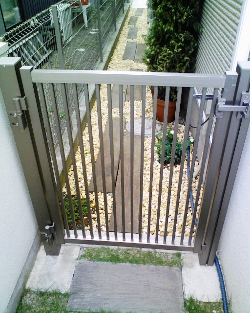 現在、庭を仕切るゲートはこんな感じなのですが、嫁さんはどうやらアルミのゲートが気に入らないらしい。