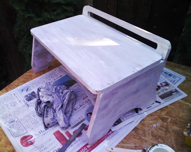 なんだか白が弱すぎな感じで、家族からも不評だったので、白のペンキを買い足して再度塗りなおし。