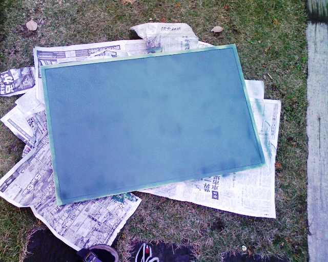 そうしたら、フレームの部分にマスキングを行い、黒板スプレーで塗装します。