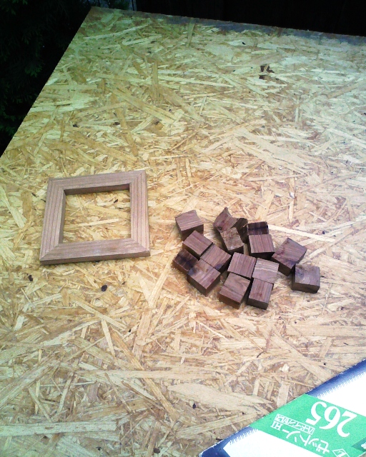 失敗したサイプレスは、もともと8センチ四方の材料にホールソーで丸く抜きとったカケラと、残った部分を2つに割った計3カケラのみ。