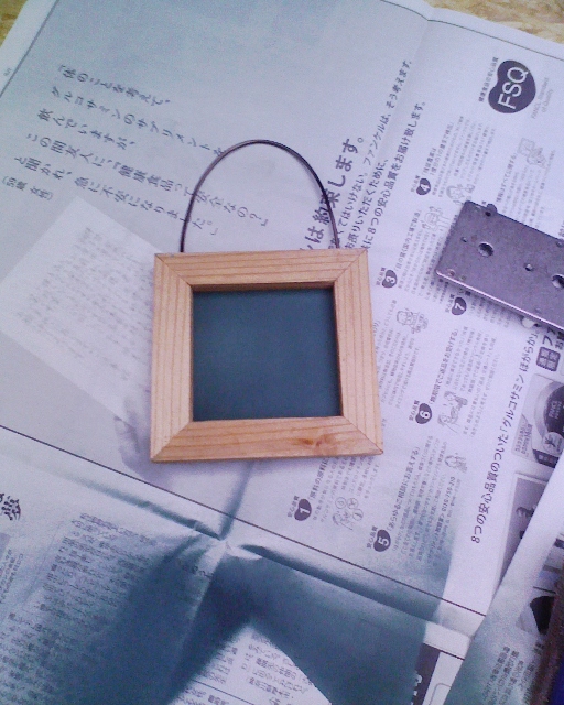 そのフレームと、端材のシナ合板とアルミワイヤーをつかって、黒板にしてみました。