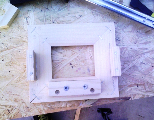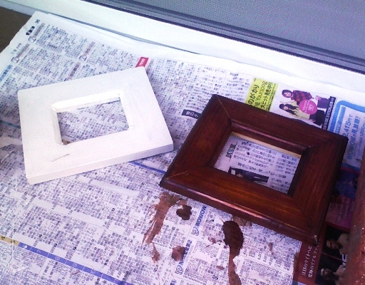 何も考えず40mm幅の材料で額を作りましたが、写真の通り支え部分を入れると幅はギリギリでした。