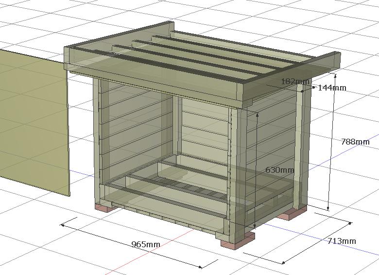 屋根も同じく分離式で、作業台として使うときは簡単に外せるようにしたいと思ってます。