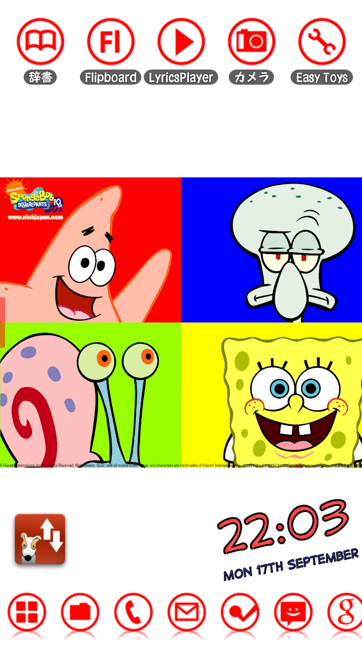 背景は派手目のやつがいいかと思い、黄色の壁紙を探していたら、スポンジボブの壁紙がよさそうだったので、本家のサイトをメインにいくつかダウンロード。