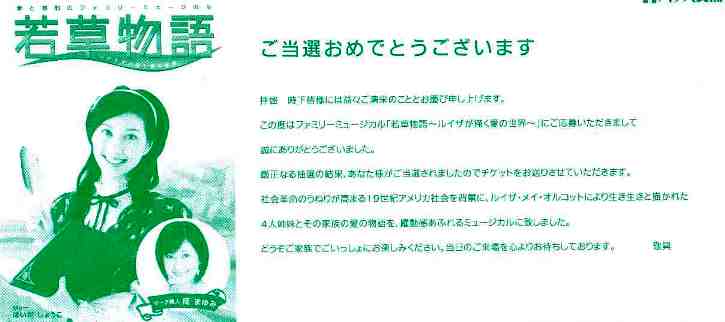 若草物語のチケット当選したわぁ~