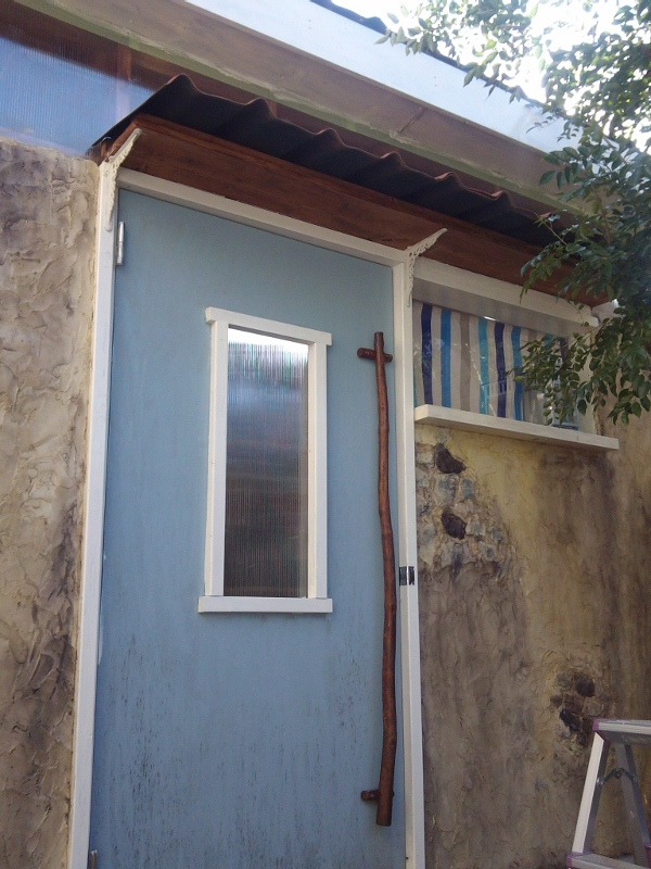 ちなみに、ドアノブは基礎作りの際に、写真のシマトネリコを半分ほど切ったので、それを使っています。